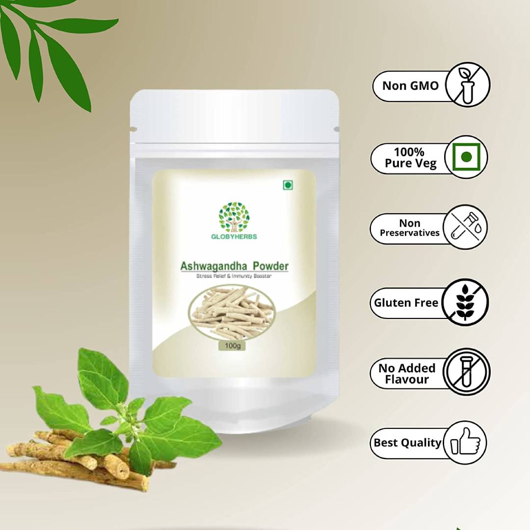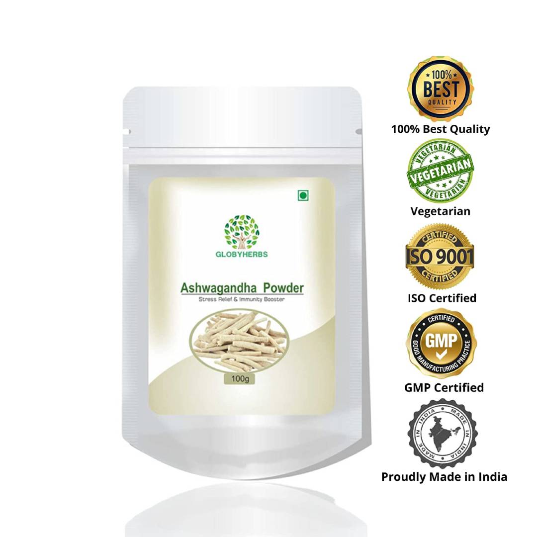 Globyherbs Ashwagandha Powder Helps In Anxiety And Stress/Good For Height Growth/Immunity Booster, Power, Energy (100g Pack of 1)
