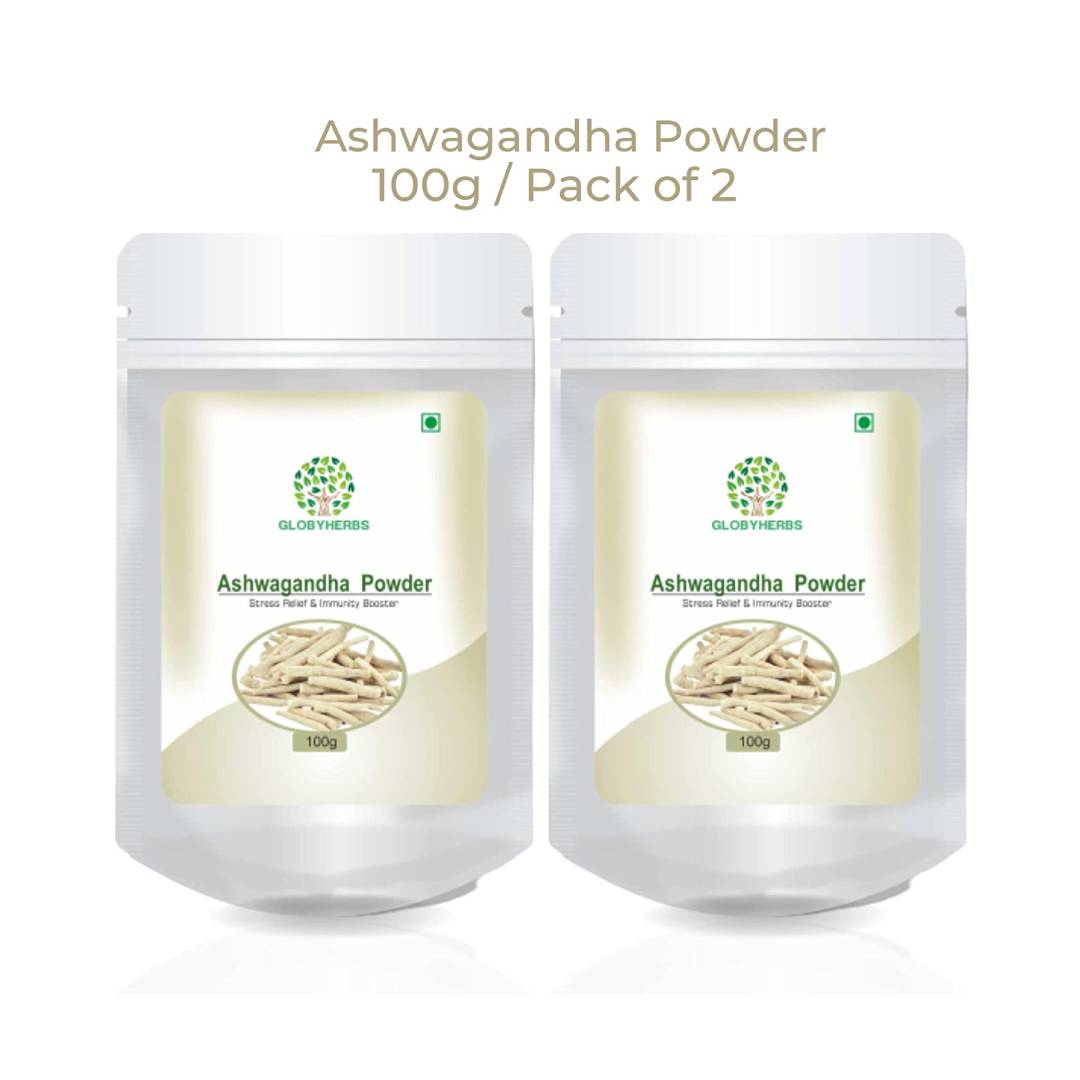 Globyherbs Ashwagandha Powder Helps In Anxiety And Stress Good For Height Growth Immunity Booster Power Energy Vitality & Stamina – 100g (Pack of 2)
