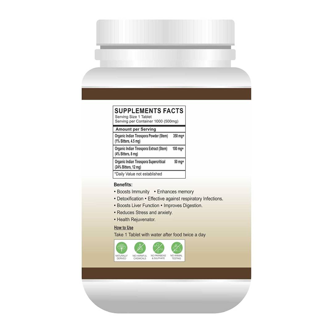 GLOBYHERBS Giloy/Guduchi (Tinospora Cordifolia), Natural Giloy Extract, Antioxidant Properties, Immunity Booster, Health And Wellness Tablet