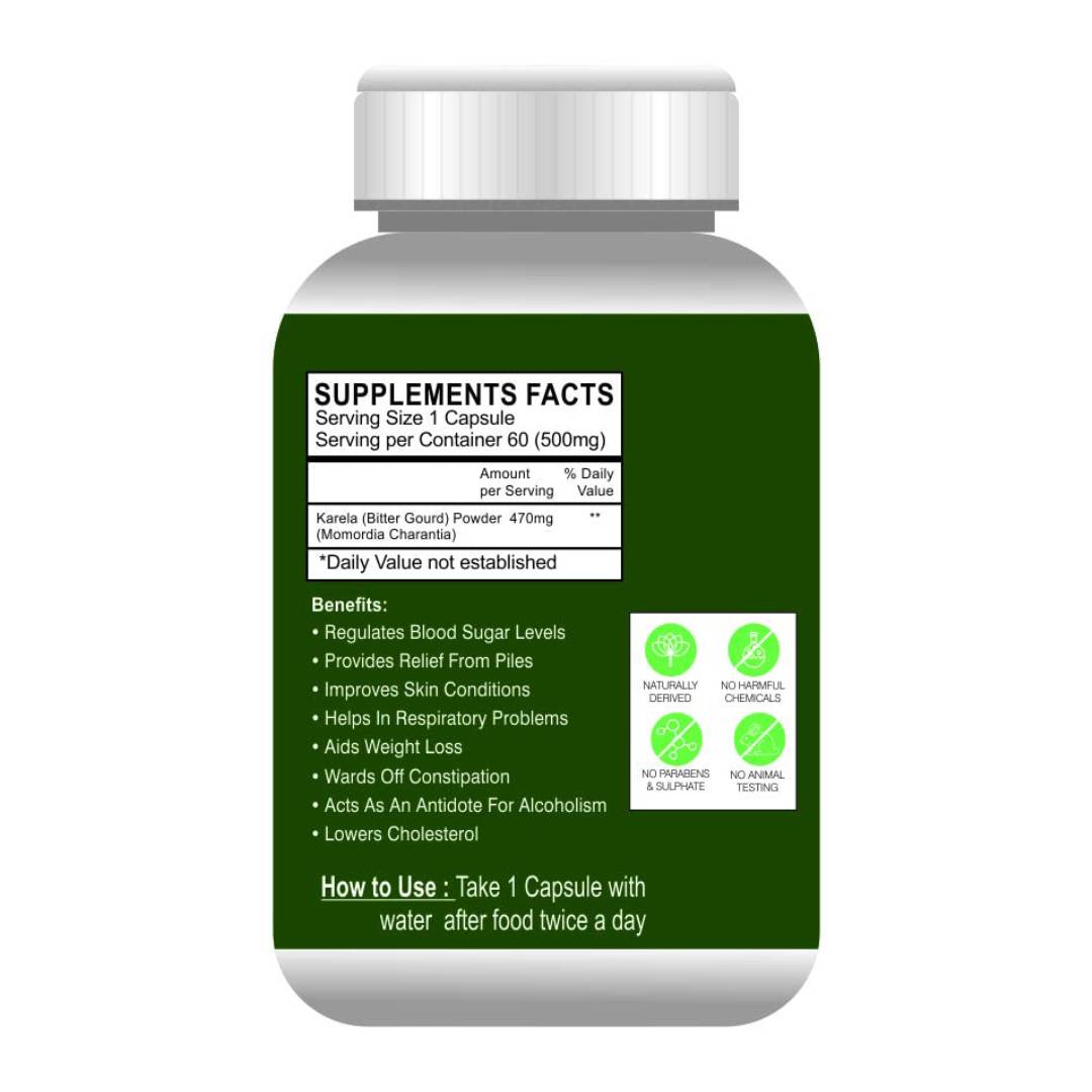 GLOBYHERBS Pure Natural Karela Capsules For Unisex Use For better Immune System60’s (Pack of 2)