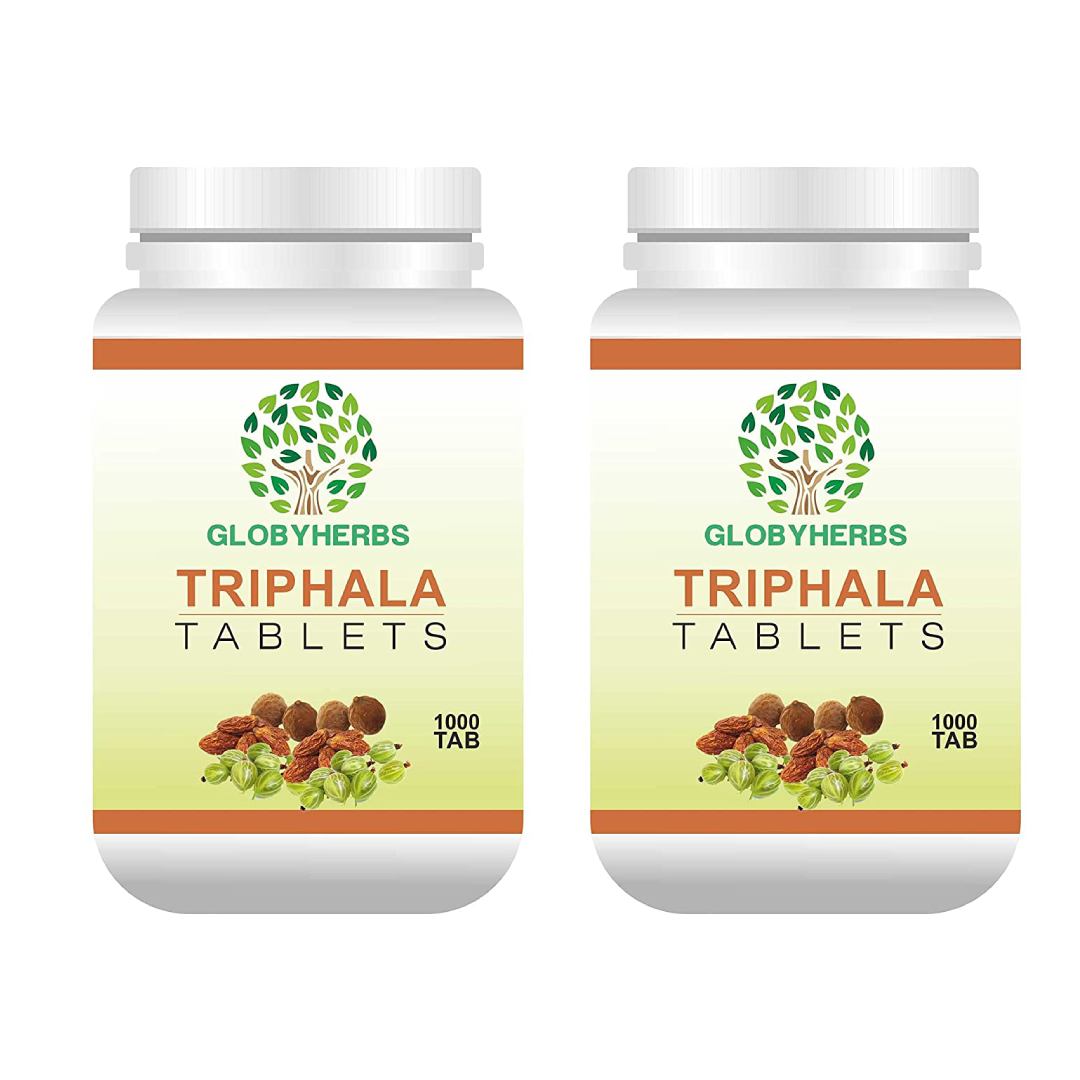 GLOBYHERBS Triphala Tablets, Supports Bowel Wellness & Healthy Gut, Helps to Boost Immunity & Useful for Digestion, Antioxidant Properties 1000’s – (Pack of 2)